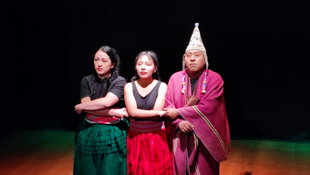 El proceso creativo culminó con dos presentaciones públicas de una obra de Teatro Ritual Comunitario: la primera en la comunidad de Ilabaya y la segunda en el Teatro Municipal de Cámara Norma Melo, en la ciudad de La Paz. Esta obra fue concebida a partir de una dirección colectiva y entrelazó tres líneas de investigación performativa: